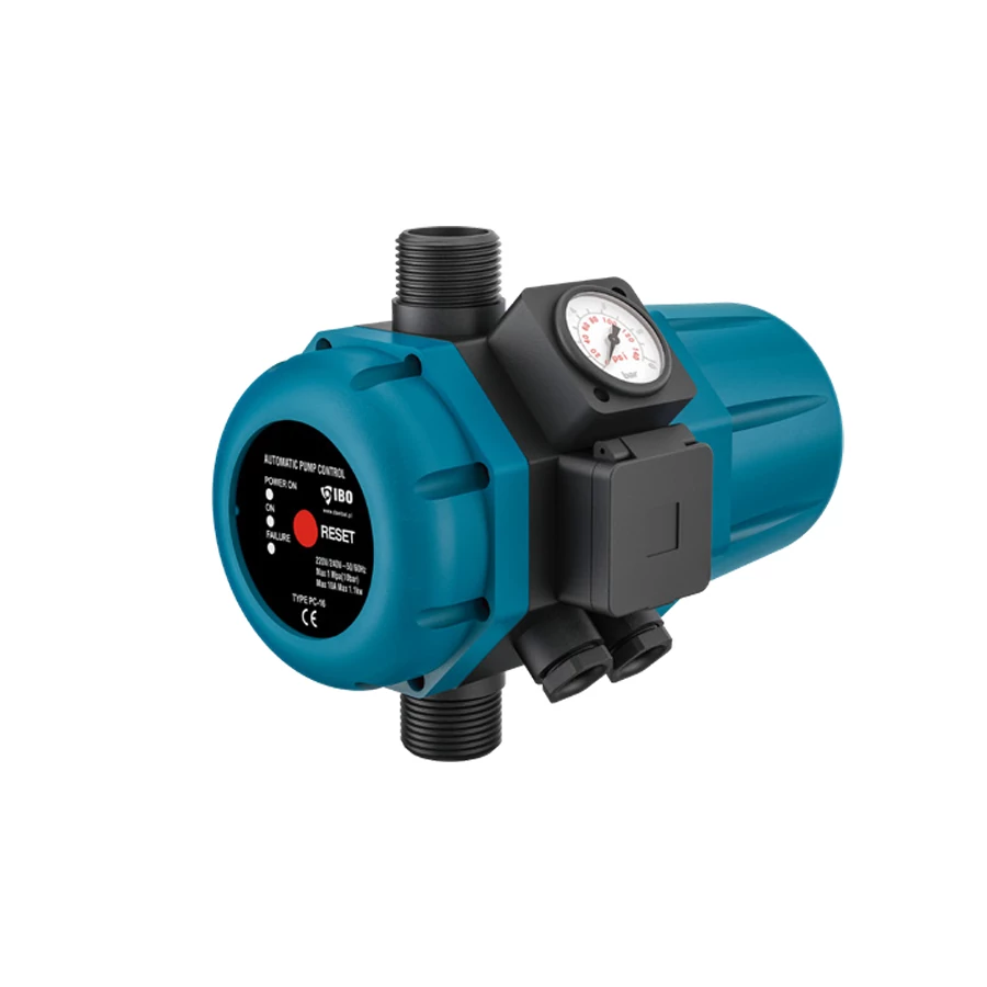 Automata szivattyúvezérlő felszíni és mélykúti szivattyúkhoz, beépített visszacsapó szeleppel és manométerrel. Nyomáskapcsoló és nyomástartály helyett használható. A csap kinyitása egy jel a PC-16 vezérlő, mely elindítja a szivattyút. A csap elzárásakor a PC-16 vezérlő leállítja a szivattyút, majd vízigény esetén automatikusan újraindítja a rendszert. Könnyen felszerelhető. 1 m-es dugvillával ellátott tápkábellel és csatlakozóaljzattal szerelt a szivattyú csatlakoztatásához. A PC-16 automatikus szivattyúvezérlő 1"-os bemenettel és kimenettel rendelkezik. Automata öntöző rendszerekhez kimondottan megfelelő vezérlő.