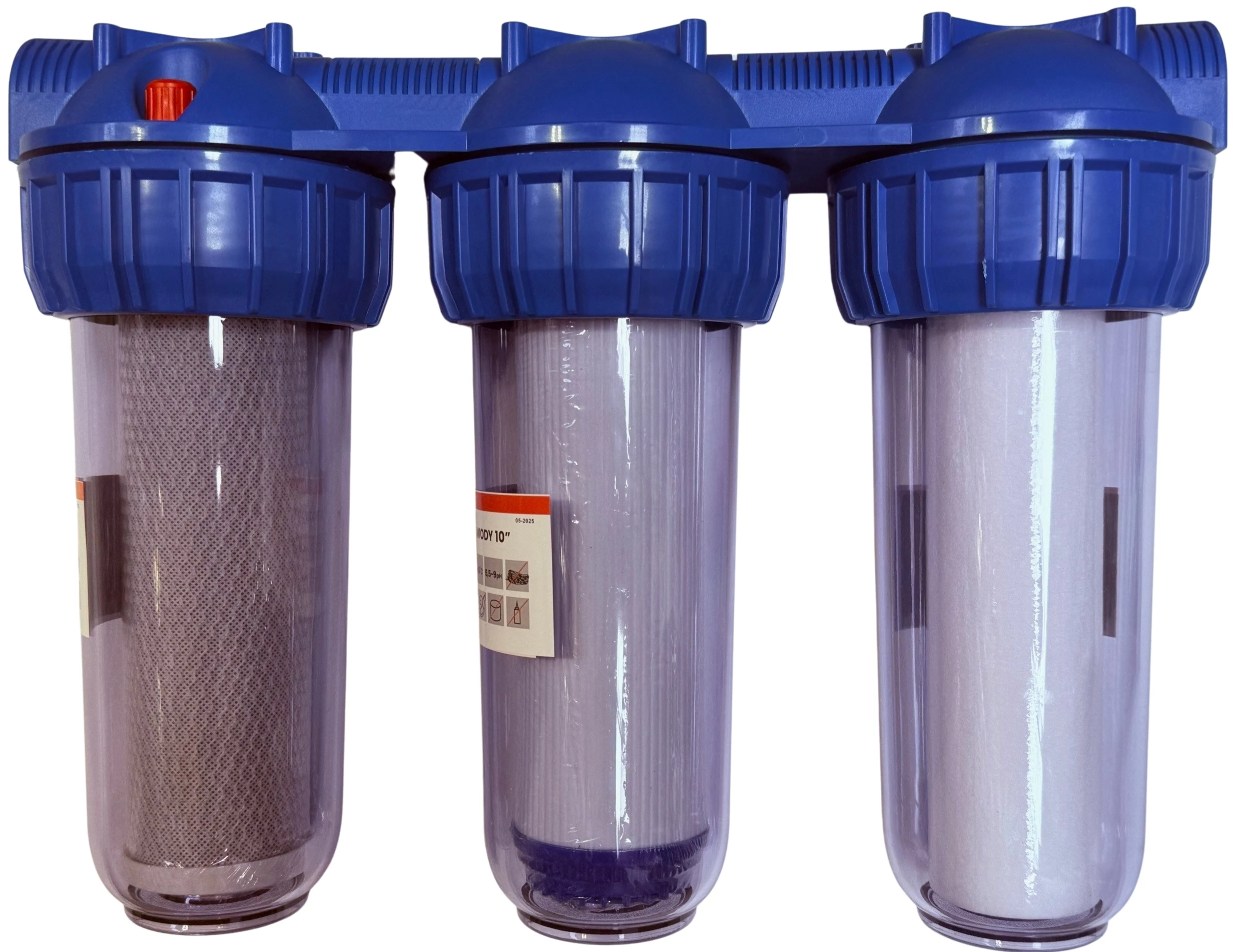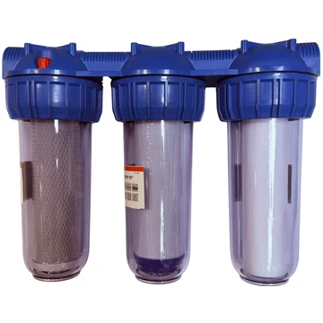 Weboldalunk használatával jóváhagyja a cookie-k használatát a Cookie-kkal kapcsolatos irányelv értelmében.Vízszűrő ház 10" 1" 3 részes, szűrőbetétekkel | IBO Kiegészítő
